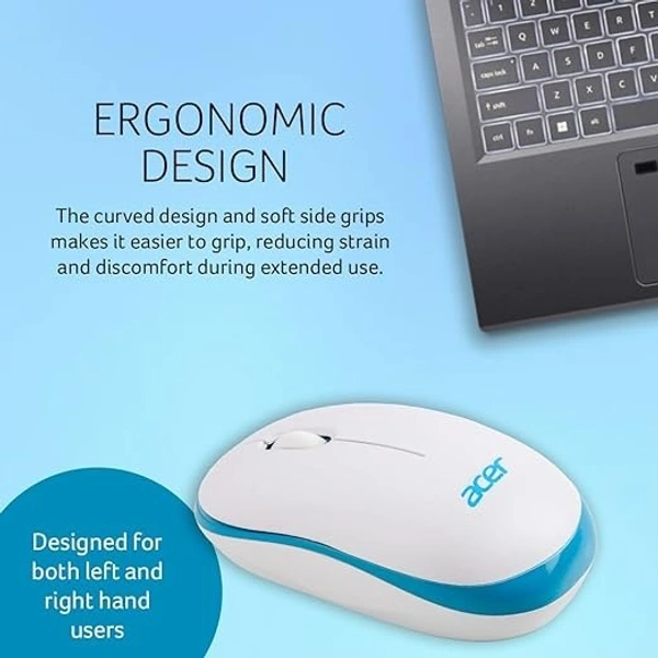 acer Wireless Mouse (1600 DPI/2.4 GHz Wireless Frequency/Optical Sensor/USB Dongle) | Color: White/Blue