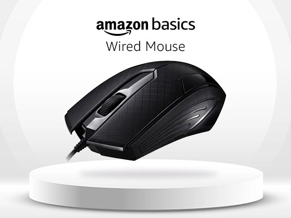 Amazon basics Wired Mouse I 3 Buttons I Up to 1600 DPI I 1.35m Cable I Black
