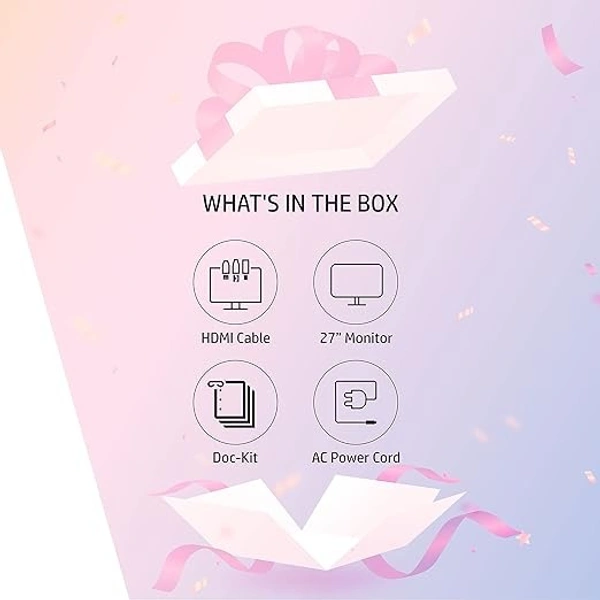 HP M27fwa 27-Inch(68.6cm) Eye Safe Certified 1920 x 1080 Pixels Full HD IPS 3-Sided Micro-Edge LED Monitor, 75Hz, AMD FreeSync with 1xVGA, 2xHDMI 1.4 Ports, 300 nits, in-Built Speakers, Silver