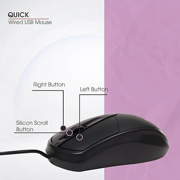 - ERGONOMIC DESIGN : Quick is an ergonomically designed USB Optical mouse that easily fit Palm which gives control grip.